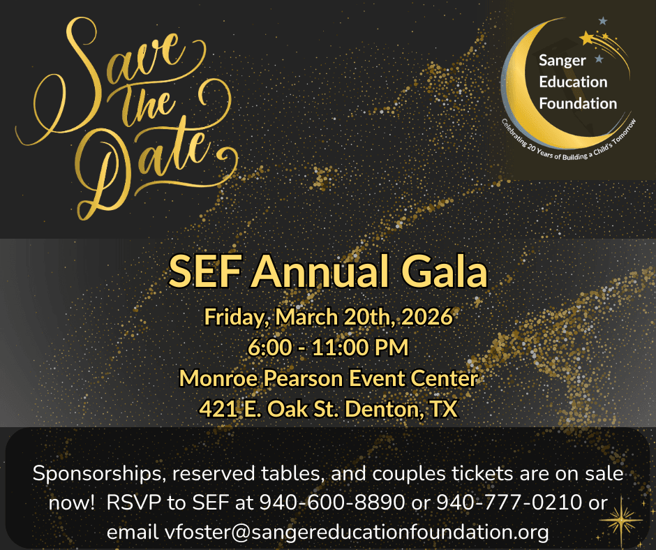 It's the event that you will not want to miss! Our annual gala has relocated to the Monroe Pearson venue to accommodate all who wish to attend this incredible evening with fellow supporters of the Sanger Education Foundation. Attendees will enjoy a delicious specially prepared catered meal, our fabulous Signature Dessert Frenzy, an amazing traditional Candy Station, plus both an extensive Silent auction, and an exciting Live Auction. Plus you will not want to miss the interactive activities for participants to enjoy an evening of celebrating our vision and mission which you helped make possible.